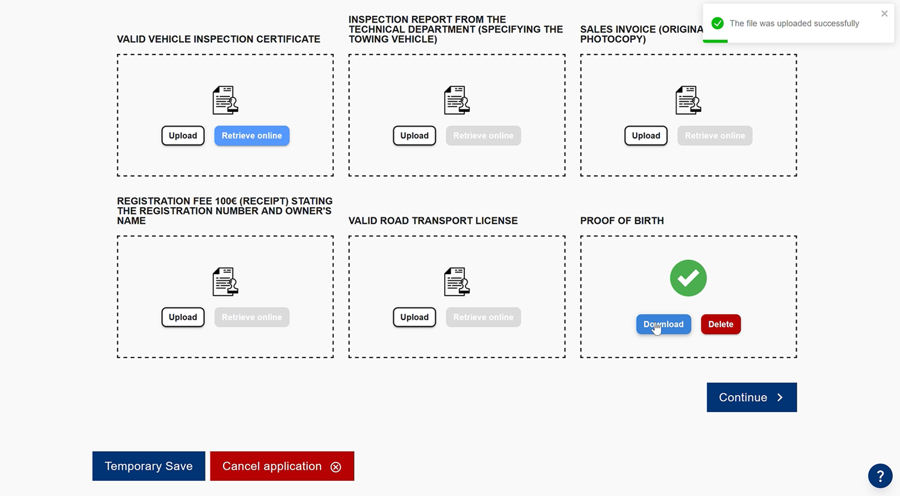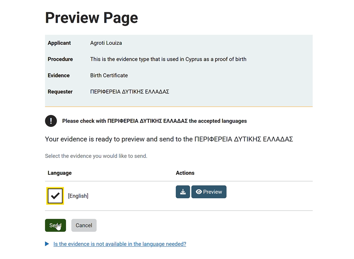Κατά την διάρκεια της συμμετοχής δοκιμάστηκε η διαδικασία “Έκδοση αδείας κυκλοφορίας ρυμουλκουμένων Δ.Χ. κατηγορίας λόγω νέας ταξινόμησης ή κατόπιν μεταβίβασης (ΑΚ07)” μέσω της πύλη υπηρεσιών της Περιφέρεια Δυτικής Ελλάδας (ΠΔΕ), σε πλήρες παραγωγικό περιβάλλον και ανταλλάχθηκε με επιτυχία μέσω της ενδιάμεσης πλατφόρμας και του συστήματος OOTS αιτούμενο αποδεικτικό από την Κύπρο (πάροχος αποδεικτικού).